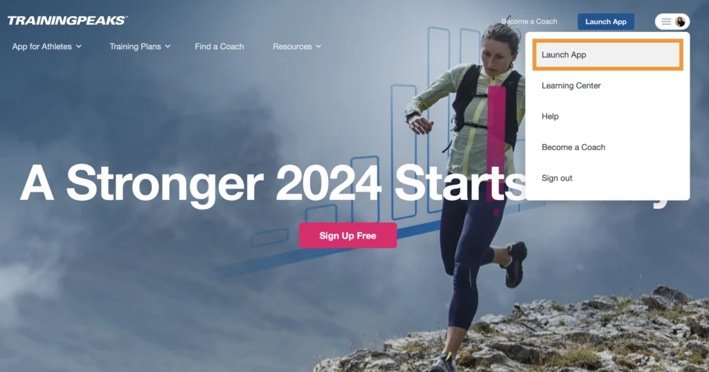 • Acesse o site do Training Peaks e clique em “Launch App” se já estiver conectado ou faça o login.